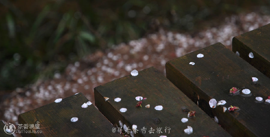 最后的那几点梅花,在满地的缤纷花瓣里,显得那么的珍贵,这花边上的茶树,必定吸收了这梅花香去了。那梅占,是否就是这样得来?